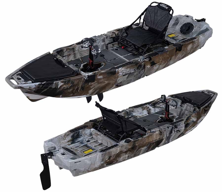El kayak de pesca modular Taramay tiene unas medidas óptimas de 300x91x35 cm con una capacidad de carga de 140 kg y un peso de 40 kg. Por lo tanto, hablamos por sus dimensiones de un kayak muy estable gracias a su manga y rápido al mismo tiempo gracias al sistema de pedalera que monta.