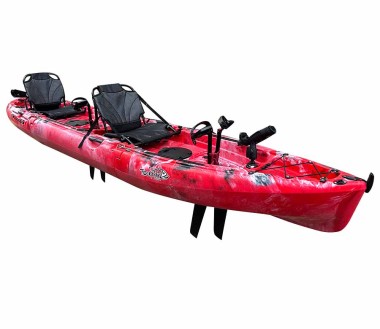 El kayak modular Breca Tándem viene con una equipación se serie excepcional, sillas de aluminio, pedaleras, tambuchos, compartimentos, porta equipajes... todo para disfrutar tanto de jornadas de pesca como de paseo/deporte en el agua.