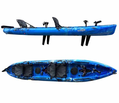 El kayak Breca Tandem modular reúne todo lo necesario para poder disfrutar del mar pescando o haciendo deporte. Un kayak desmontable en 3 piezas, con gran equipación y unas medidas de 420x78x32 cm, pesa 42 kg y soporta hasta 220 kg.