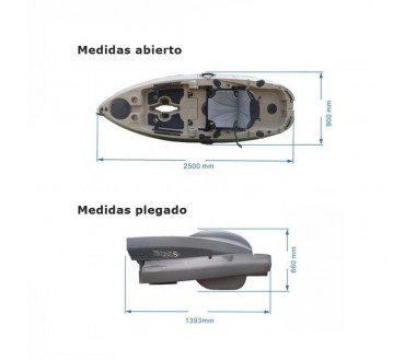 Su eslora de 250 cm, lo convierte en un kayak fácil de usar y exento de permisos en la mayoría de confederaciones hidrográficas por no ser superior a 250 cm. Su manga de 90 cm, al mismo tiempo lo convierte en una kayak muy estable. Tiene una altura de 40 cm para salvar el agua perfectamente. Soporta 150 kg con un peso reducido de apenas 20 kg.