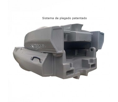 El kayak de pesca plegable Tropel es un monoplaza rígido de polietileno, con un sistema exclusivo y único de todokayak, que permite plegarlo completamente quedando una pieza encima de otra, permitiendo así poder guardarlo y transportarlo cómodamente, incluso dentro de un coche que tenga maletero de puerta.