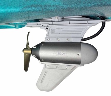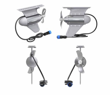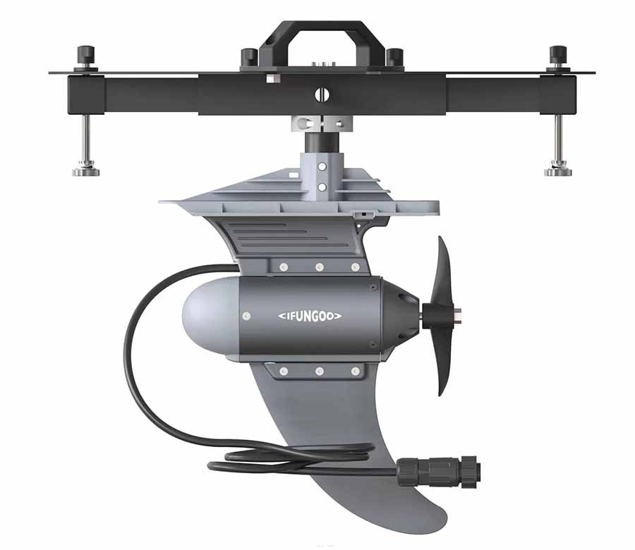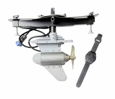 Motor eléctrico para kayak y tablas de paddle surf (aleta deslizable). Incluye tapa montaje adaptador para kayak de aletas. Tiene una potencia de 450W, pesa 1,1 kg, hélice de 3 aspas con 3000 revoluciones por minuto, velocidad aproximada 9km. Incluye reloj bluetooh para manejarlo en remoto. (Batería de litio no incluida)