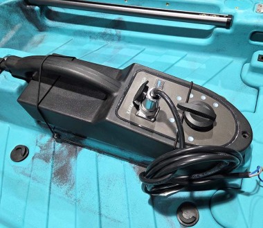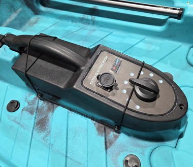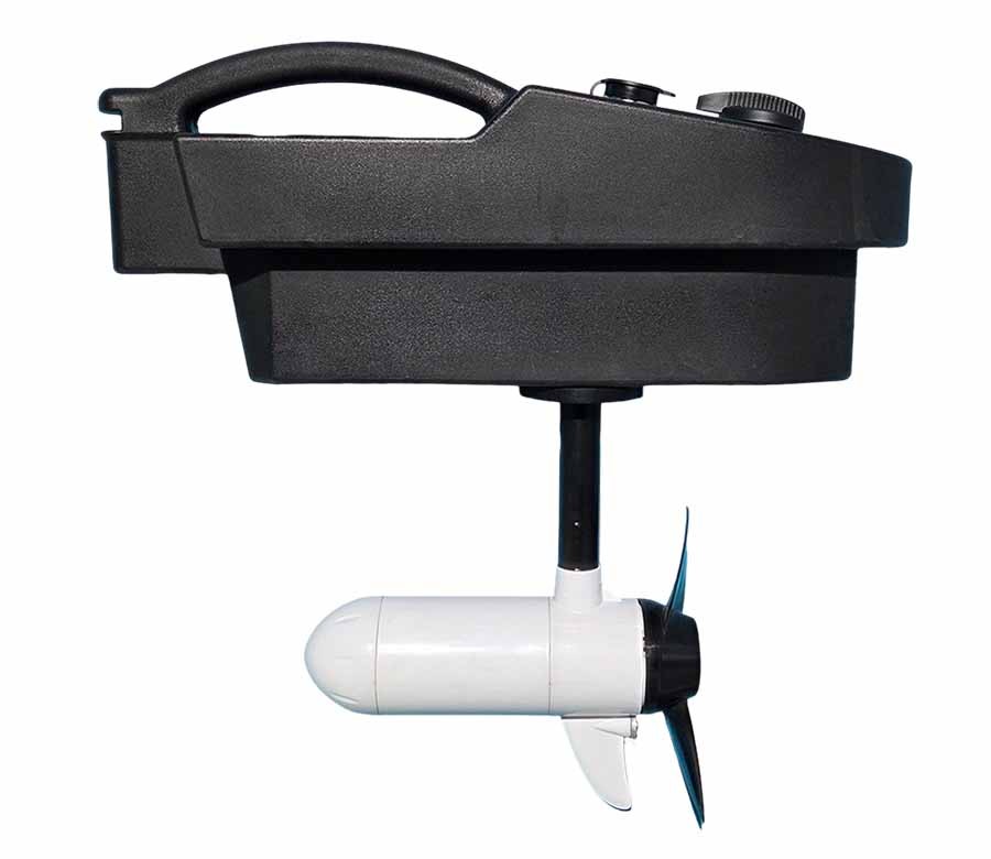 Motor eléctrico para kayak de 35lbs 420W 12V con 4 marchas de avance y 3 de retroceso para kayak LAMPREA. Monta una hélice de doble aspa y toma para el conector de batería. Incluye el cable con el cabezal y los extremos para la batería (Batería no incluida). Válido para agua salada